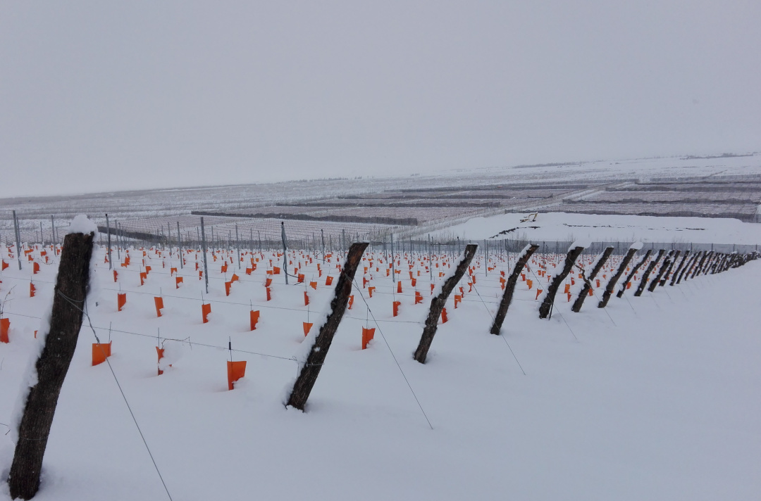 Auch die kargen Böden sind bei genauerem Hinsehen in den tieferen Gesteinsschichten gesünder, als es die spärliche Vegetation an der Oberfläche vermuten lässt. "Die Böden sind ähnlich wie im Burgund", erklärt Juan Pablo Murgia. Sand, Lehm und Kalk liegen ähnlich übereinander und geben den Trauben, die hier wachsen, ihren ganz besonderen Charakter. Um der Gefahr von plötzlichem Frost auch während der Blüte im Frühjahr zu begegnen, setzt das Weingut auf den Iglo-Effekt und besprüht alle Reben frühzeitig mit Wasser, das sich als schützende Eisschicht um Blätter und Blüten legt. Dies sicherte die Ernte 2021, als die Temperaturen im Oktober (Frühjahr) kurzzeitig auf -7°C fielen.