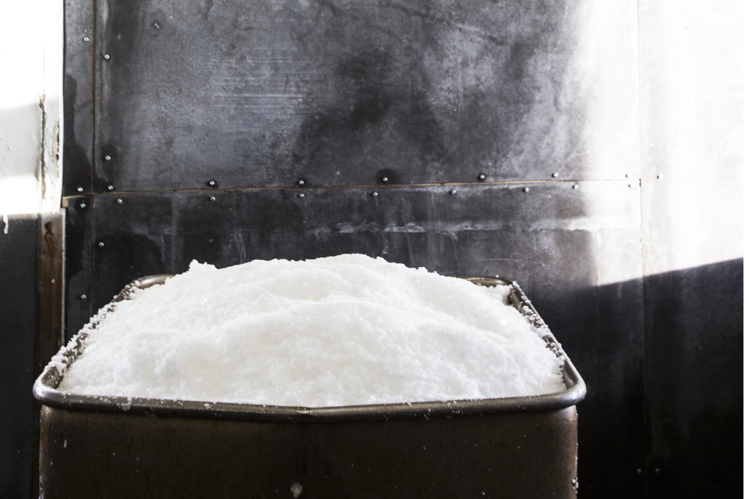 Dort sorgen Heizrohre, gefüllt mit über 90° heißem Thermalwasser aus der nur 50 Meter entfernten Quelle, für die erste Verdunstung. Sobald die Sole den richtigen Salzgehalt von etwa 20 % erreicht hat, wird sie in die Becken des Siedehauses weitergeleitet. Dort wird der Verdunstungsprozess so lange fortgesetzt, bis sich Salzflocken bilden, die später von Hand "geerntet" werden. Nachdem das Salz getrocknet ist, wird es ebenfalls in Handarbeit abgefüllt und verpackt.